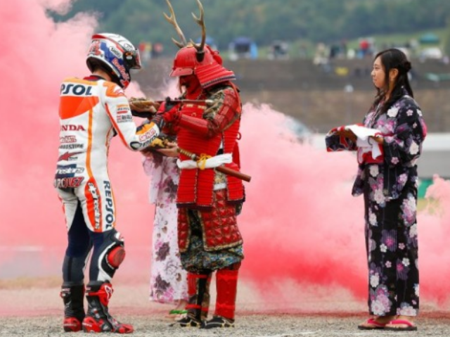 Selebrasi Ala Samurai Jepang Untuk Marc Marquez di Motegi Jepang.
